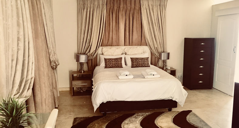 Decorated in Mahogany ,Cream , Old Gold and Brown , this room is 41 m2 with a King size bed, Shower, toilet and basin. It is a South Facing facing room with a small sitting area. A 3rd person can be accommodated in the room on request on a sleeper Couch. The room has the following: TV with DSTV Air conditioning, Coffee and Tea Station and free Wi-Fi.